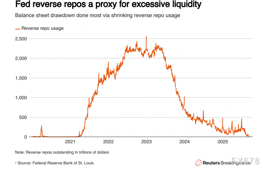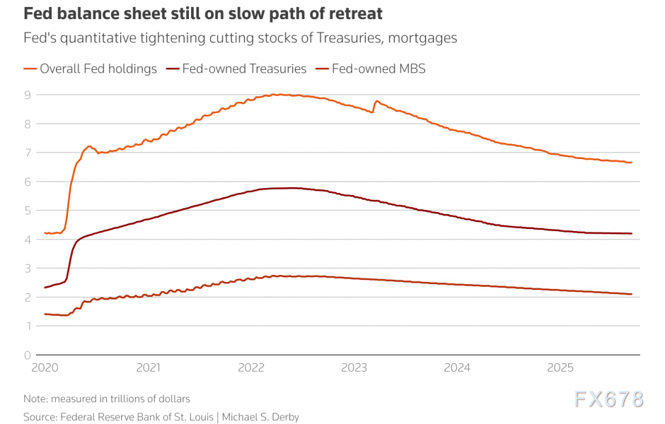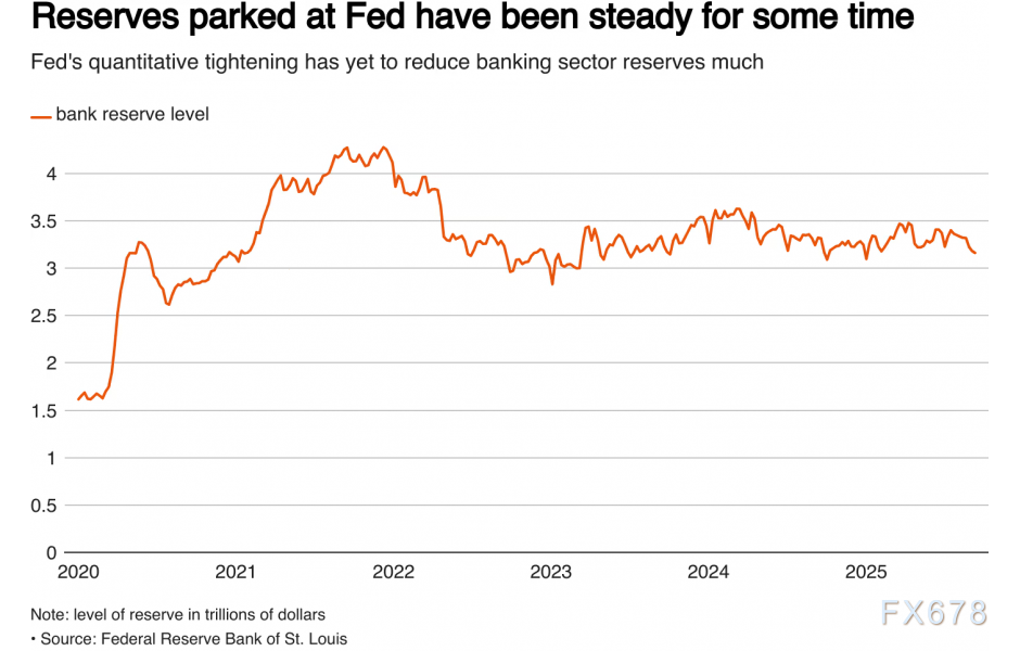 美国银行体系准备金目前为3.2万亿美元,在今年夏天的一次演讲中,美联储理事沃勒表示,缩表结束时,准备金可能在2.7万亿美元。